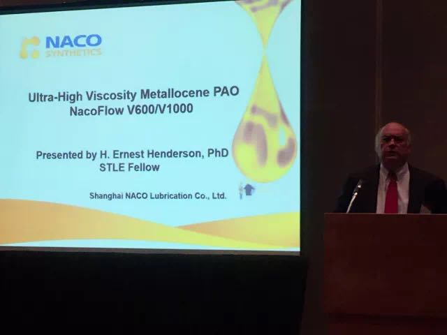 STLE學者H.Emest Henderson博士向與會者介紹上海納克的超高粘度茂金屬PAO NacoFlow®V600/1000
